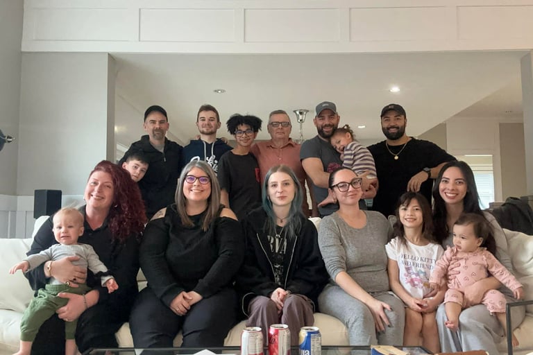 My family and I, Christmas 2025. We are a mixed-race family, as diverse as they come. I am expecting one more grandchild soon, #9, and we are all looking forward to many more great times together! Being a Cancer survivor in 2024 and having a triple bypass in November 2025, 1 month before this picture, has given me even more incentive to help others enjoy their families in the years ahead!